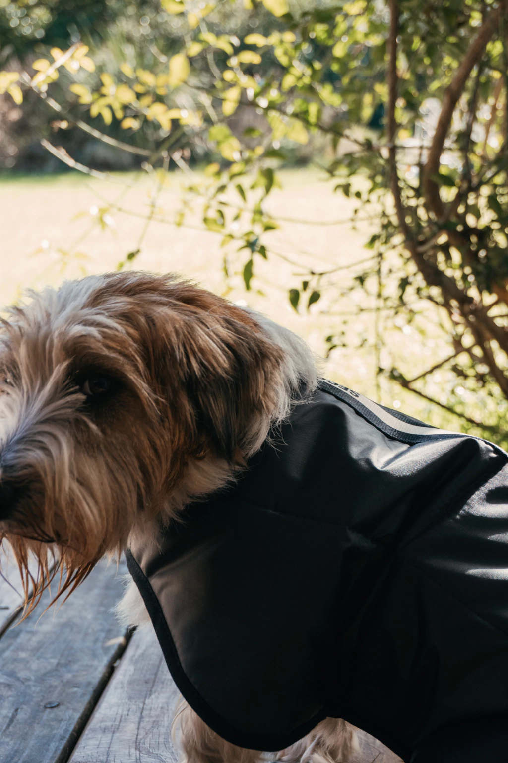 Piloto tipo capa de lluvia impermeable para perro, reversible, abrigado y cómodo. Tiene un ajuste seguro, liviano y cómodo. Fácil de colocar.
