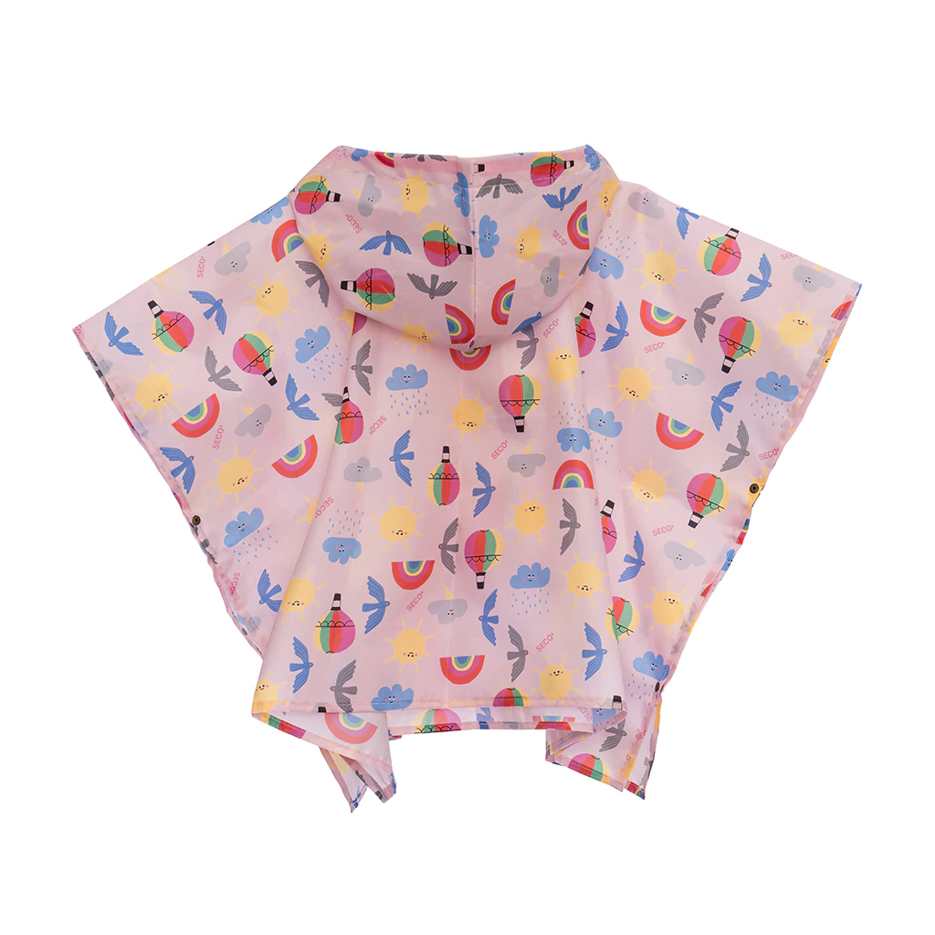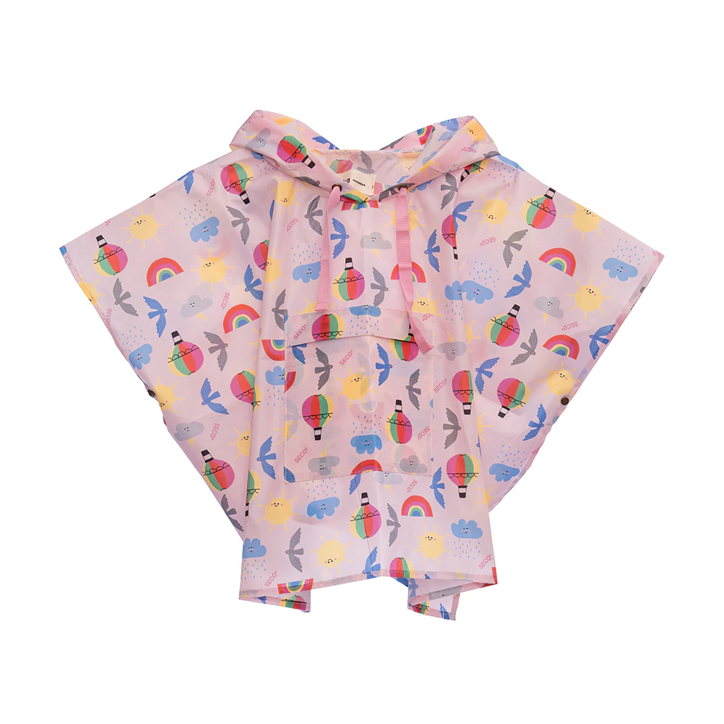 Capa de lluvia para niños tipo poncho con capucha y bolsillo.