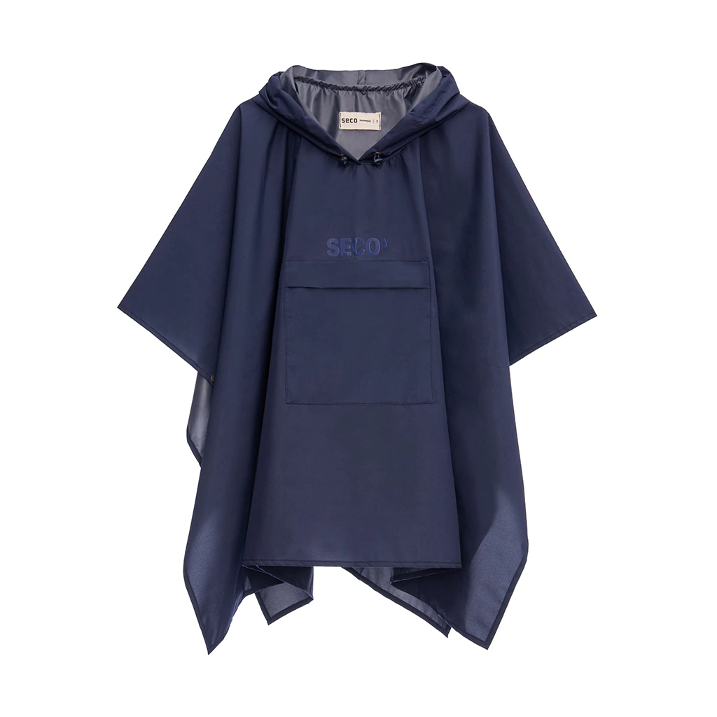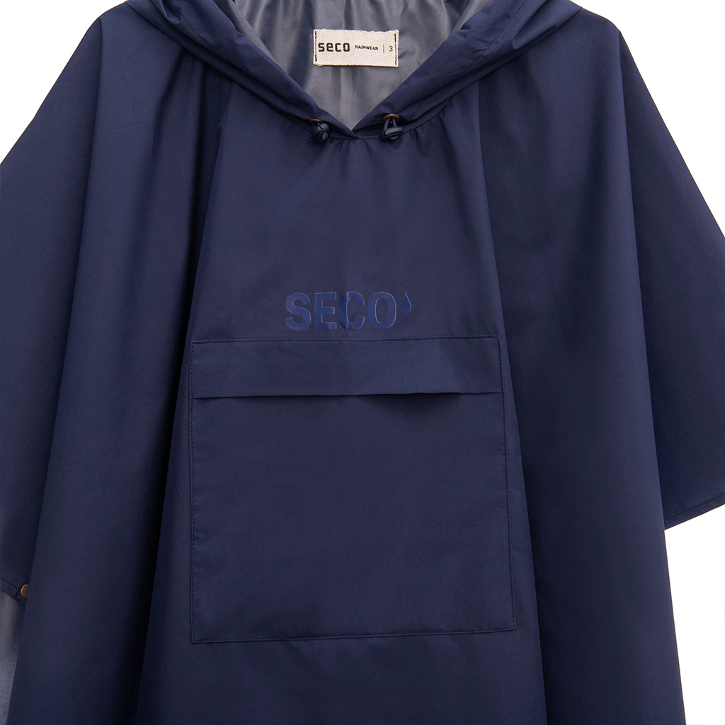 Capa de lluvia para niños tipo poncho con capucha y bolsillo.