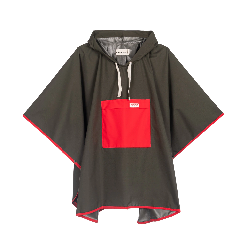 Capa de lluvia para niños tipo poncho con capucha y bolsillo.