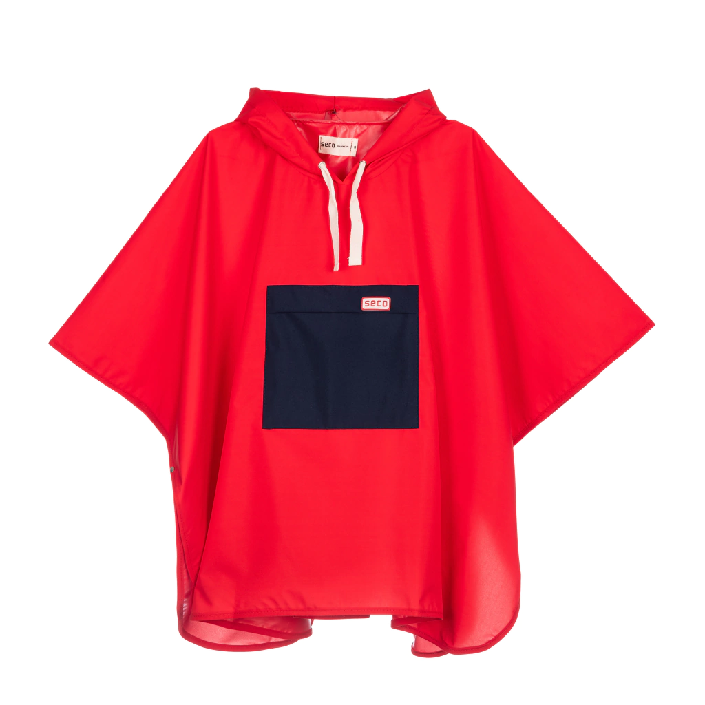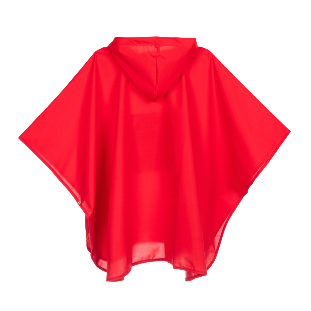 Capa de lluvia para niños tipo poncho con capucha y bolsillo.